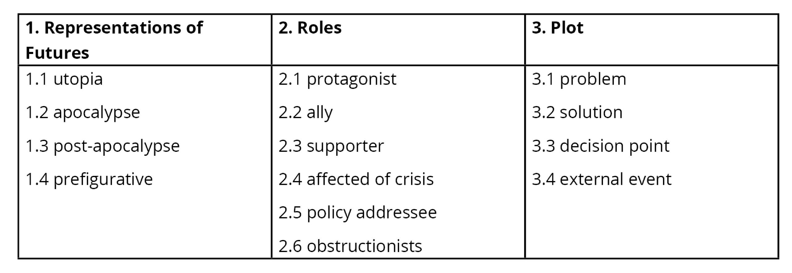 To understand the interrelations between resilience as a broader policy vision geared towards uncertain futures and reflexive governance as the strategy to achieve policy goals in the NSP context, we analyze expressions of narrative futures. Narrative futures entail different imaginaries of the future and temporal structures. We unpack them along three dimensions: First, we find representations of expected futures: apocalyptic futures (warning of future catastrophe), postapocalyptic futures (highlighting that we are already in the midst of the catastrophe), utopian futures (positive visions of a desirable future) and prefigurative futures (highlighting the cracks in the present where examples of utopian futures already exist) (de Moor 2022; Friberg 2022; Cassegård and Thörn 2018). Second, narratives about such futures are structured as plots – chains of events linking experiences and conflicts of characters in a temporal and spatial setting (Fischer et al. 2022: 14) – in which specific causal-temporal linkages of problems and solutions are constructed. As a third dimension, we focus on the specific roles assigned, such as the story’s protagonists and their supporting cast, in order to understand how and by whom resilient urban futures ought to be shaped.